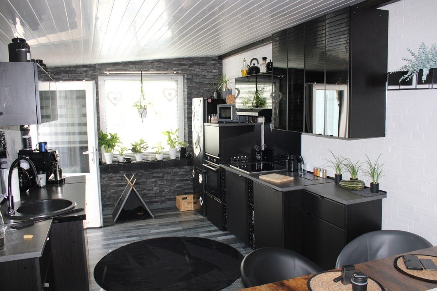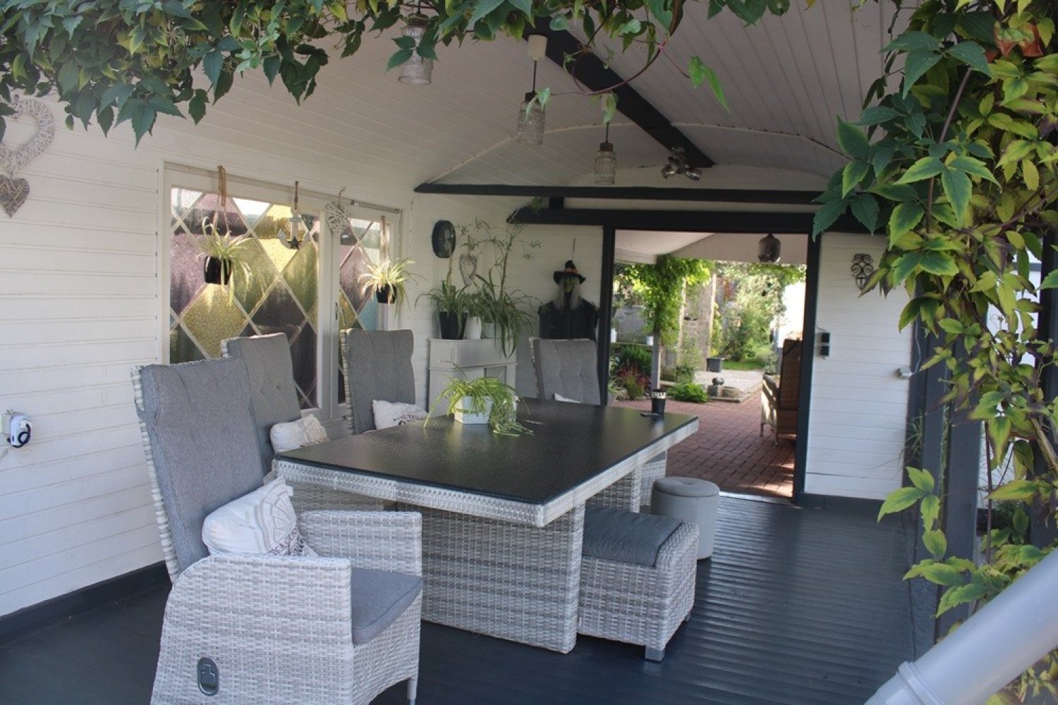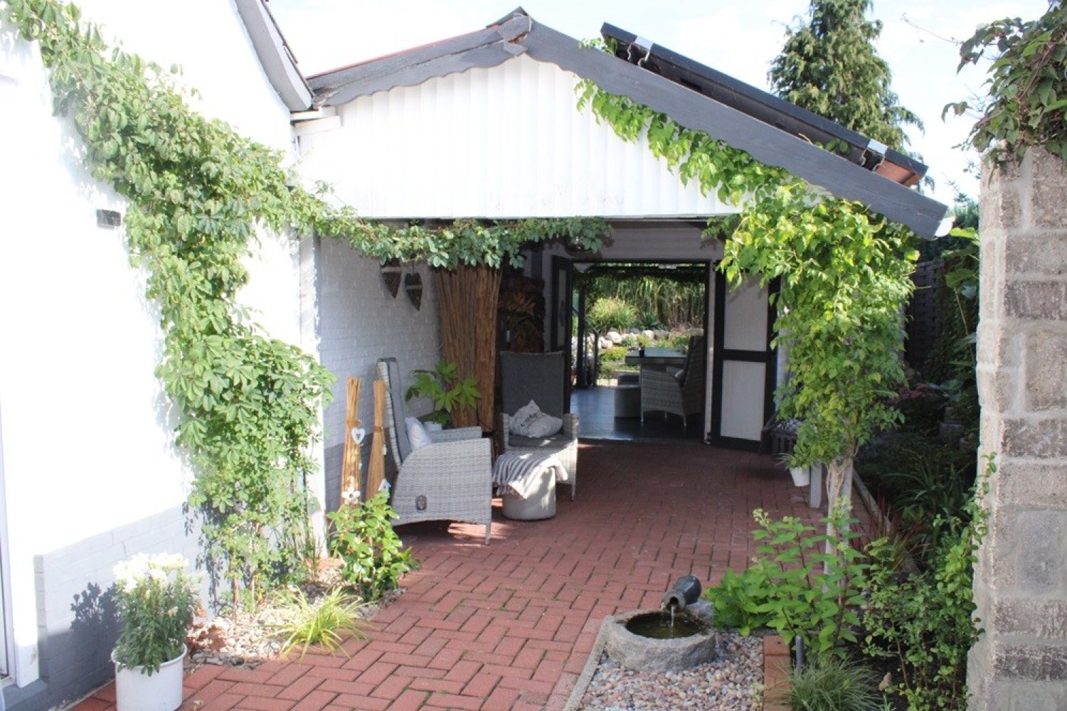 EG: geräumiges Wohnzimmer mit Kaminofen und angeschl. Eßzimmer, Wohnküche mit EBK, Schlafzi. mit Ankleidezi., Bad (ebenerdige Dusche/WC), Gäste-WC mit Hauswirtschaftsraum, Hinterküche mit EBK, 2 Garagen, Abstellräume und Teilkeller