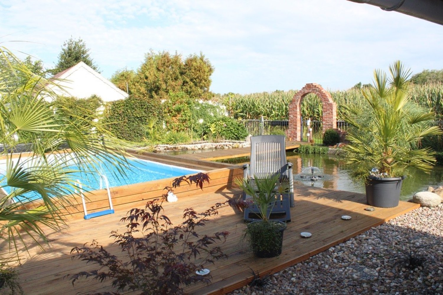 Ferner zählen 2 überdachte Terrassen, Grillpavillon, großer Schwimmteich, Pool sowie Terrasse zum Anwesen. Idyllische, ruhige Wohnlage; kaum einsehbares, gut zugeschnittenes Grundstück mit unverbautem Blick über Wiesen und Felder; Ölzentralheizung von 2012 nebst 2,2 kw PV-Anlage (Energieausweis ist beantragt); solide Bausubstanz; guter Pflegezustand; ideal für eine junge Familie, aber auch als Altersruhesitz geeignet